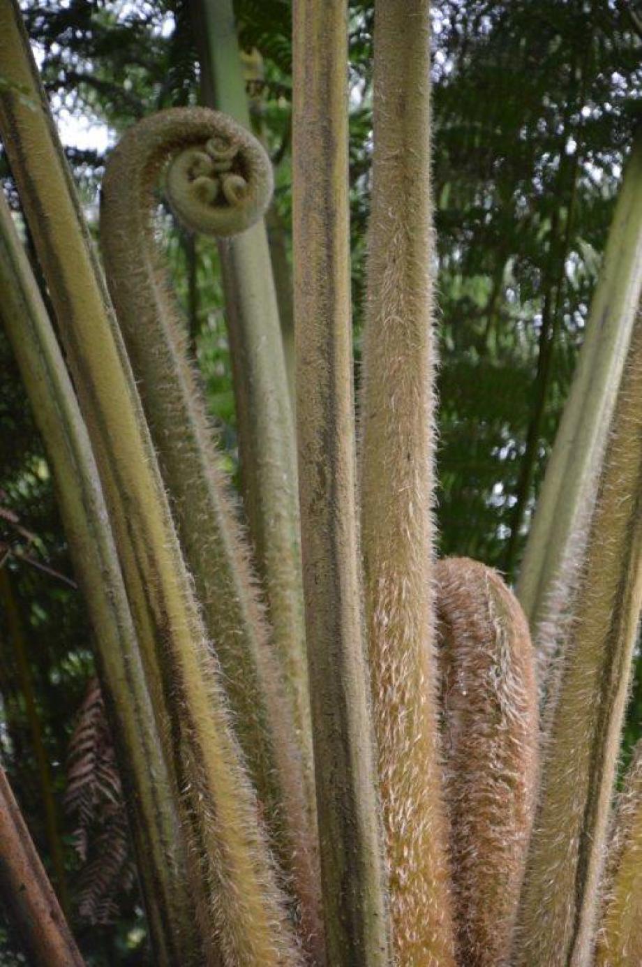 La Cyathea Brownii es quizá el helecho más imponente con un tronco color crema que lo hace muy atractivo y que destaca en cualquier jardín. Los frondes pueden medir hasta ocho metros de longitud.