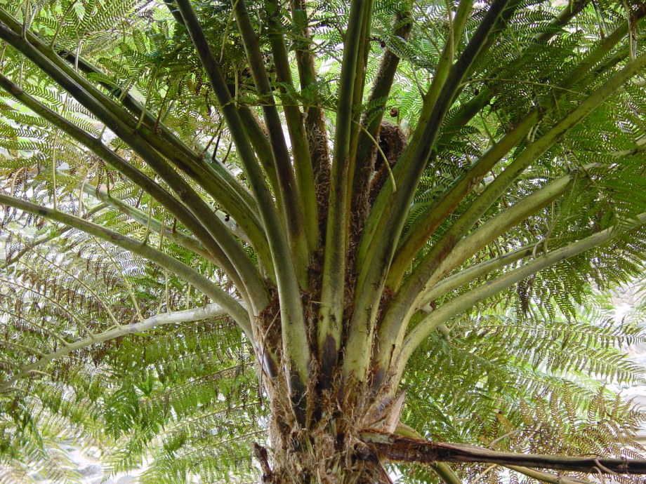 Corona de Cyathea Cooperri. vista desde abajo.